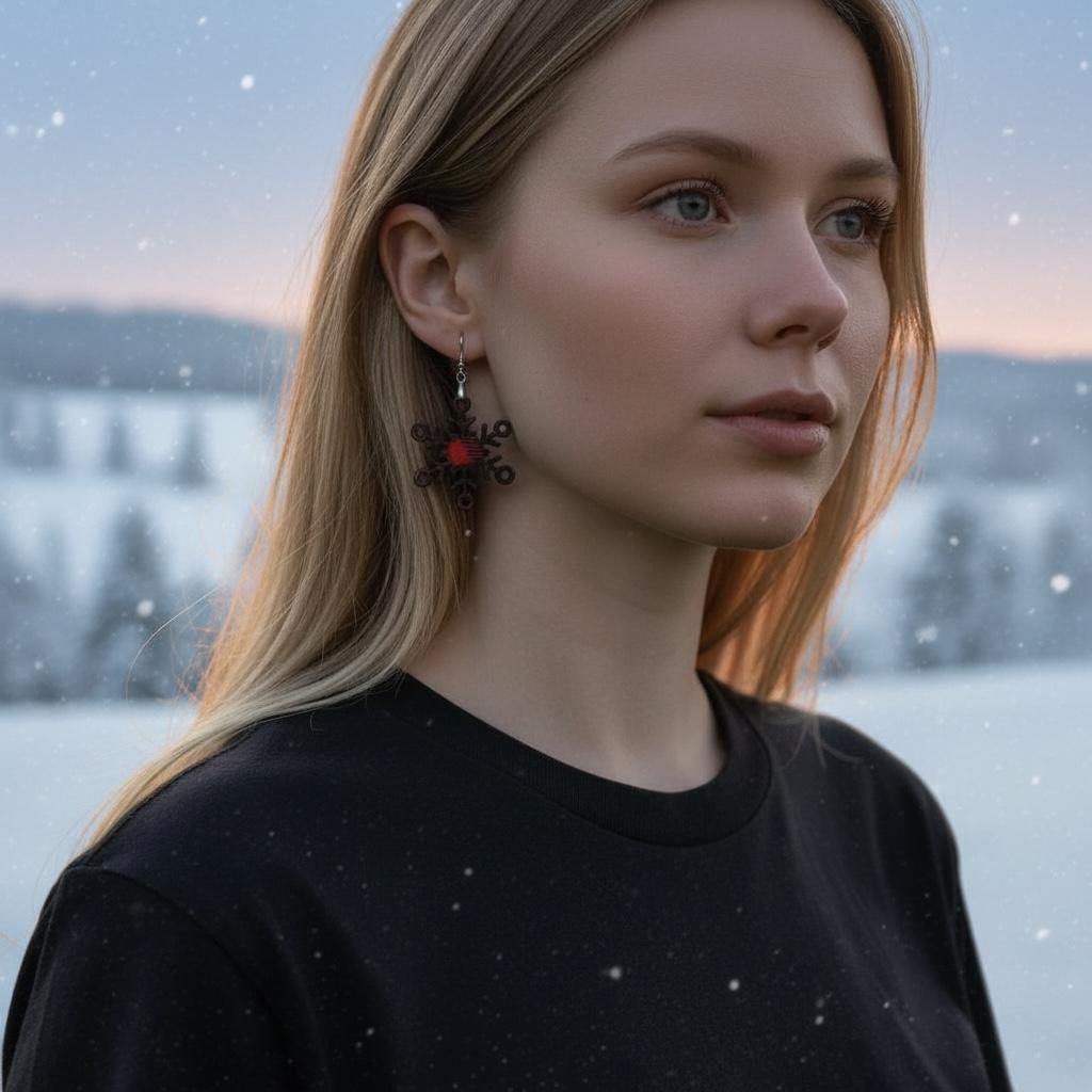 Snowflake Earrings: Buffalo Plaid Wood Dangle, Hypoallergenic Steel