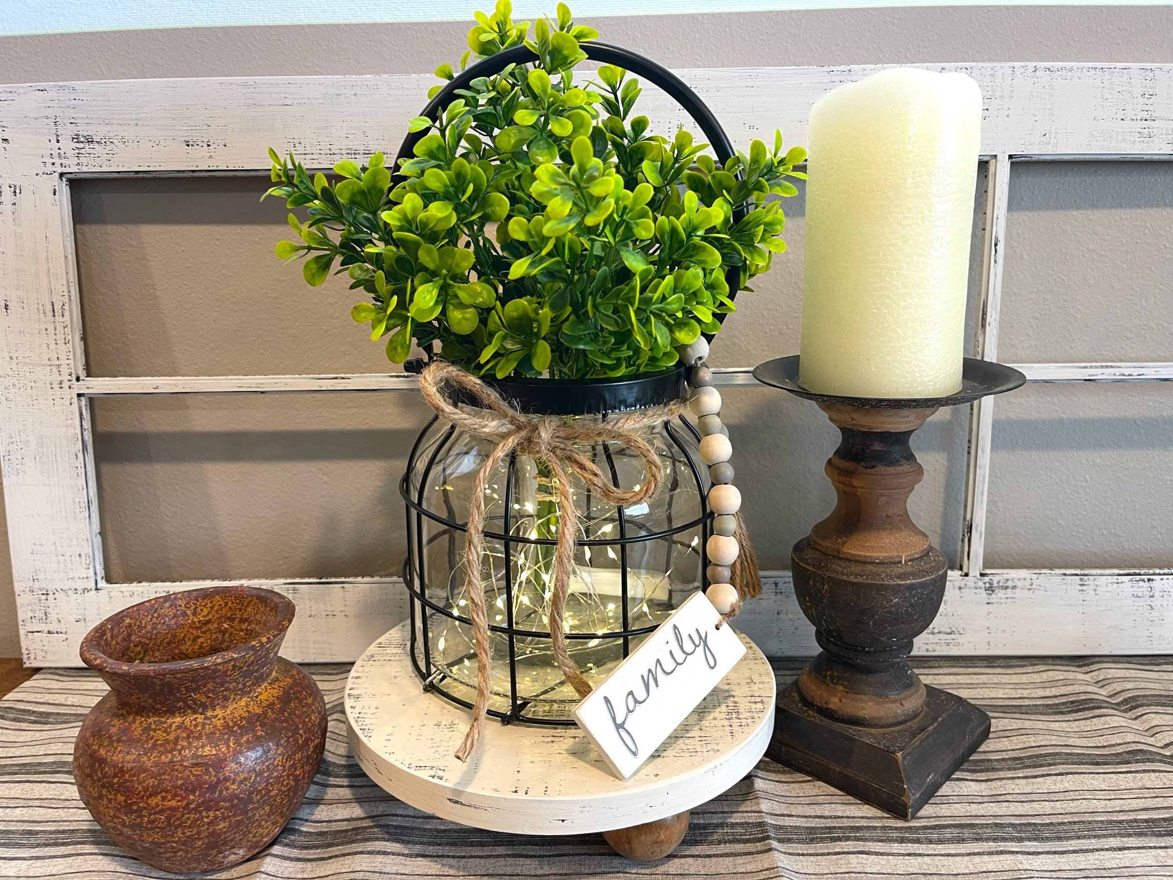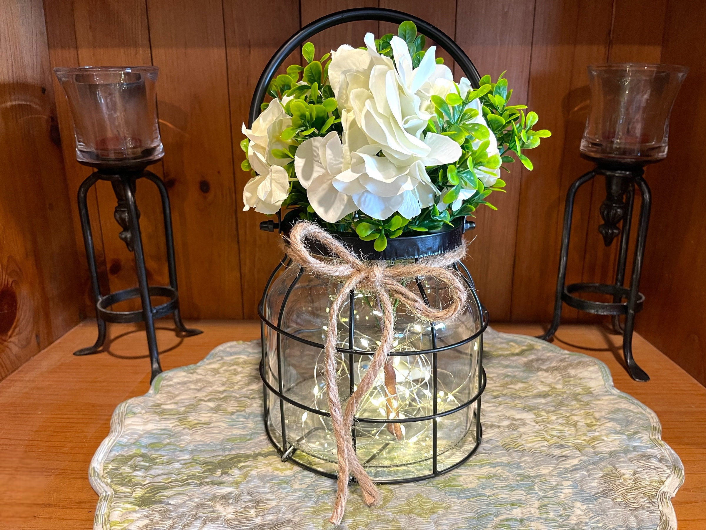 Farmhouse Lantern, Vintage Style Centerpiece, Floral Vase Greenery, Classic Minimalist Decor, living Room Dining Kitchen Entry Lamp Lights