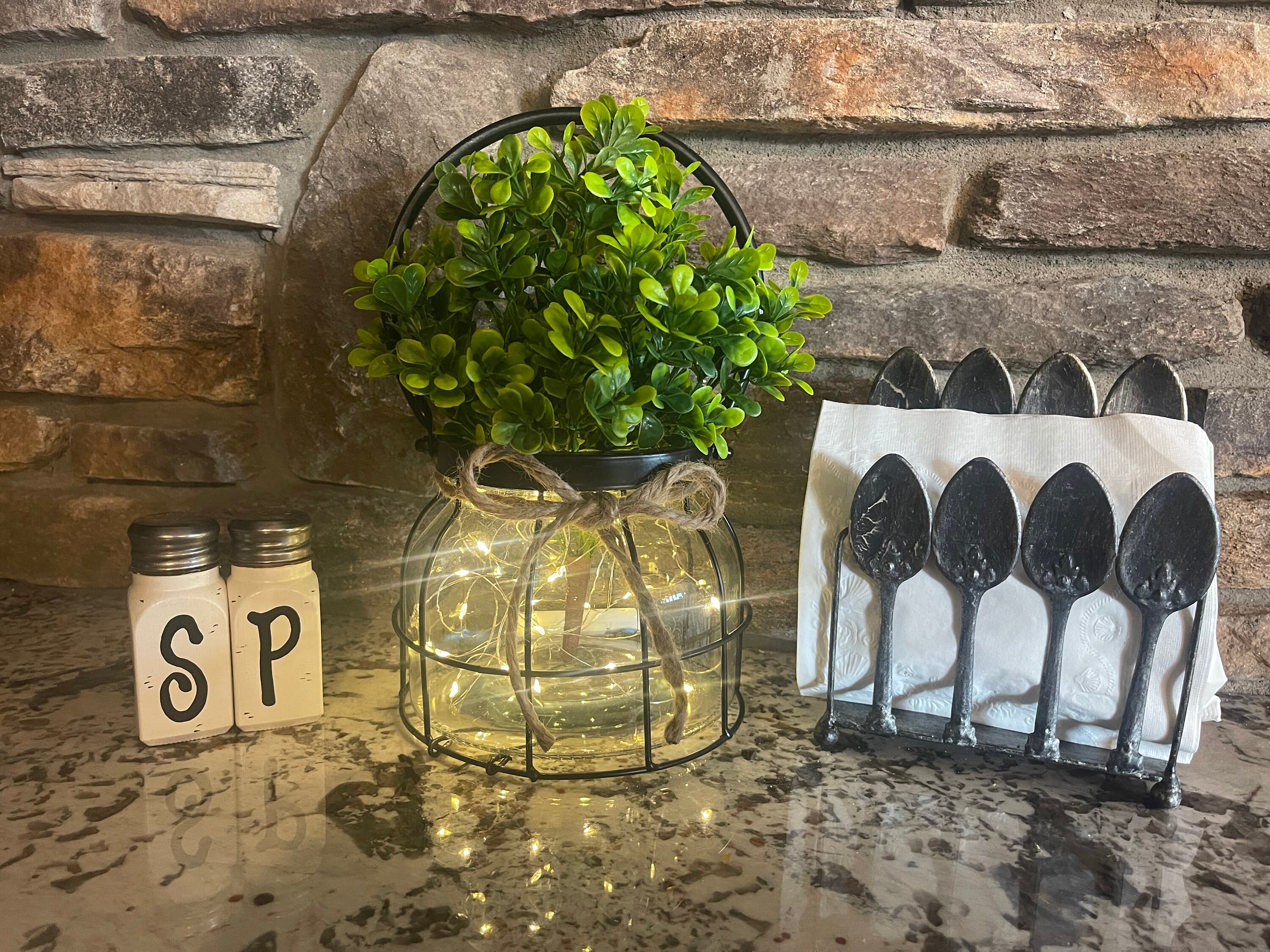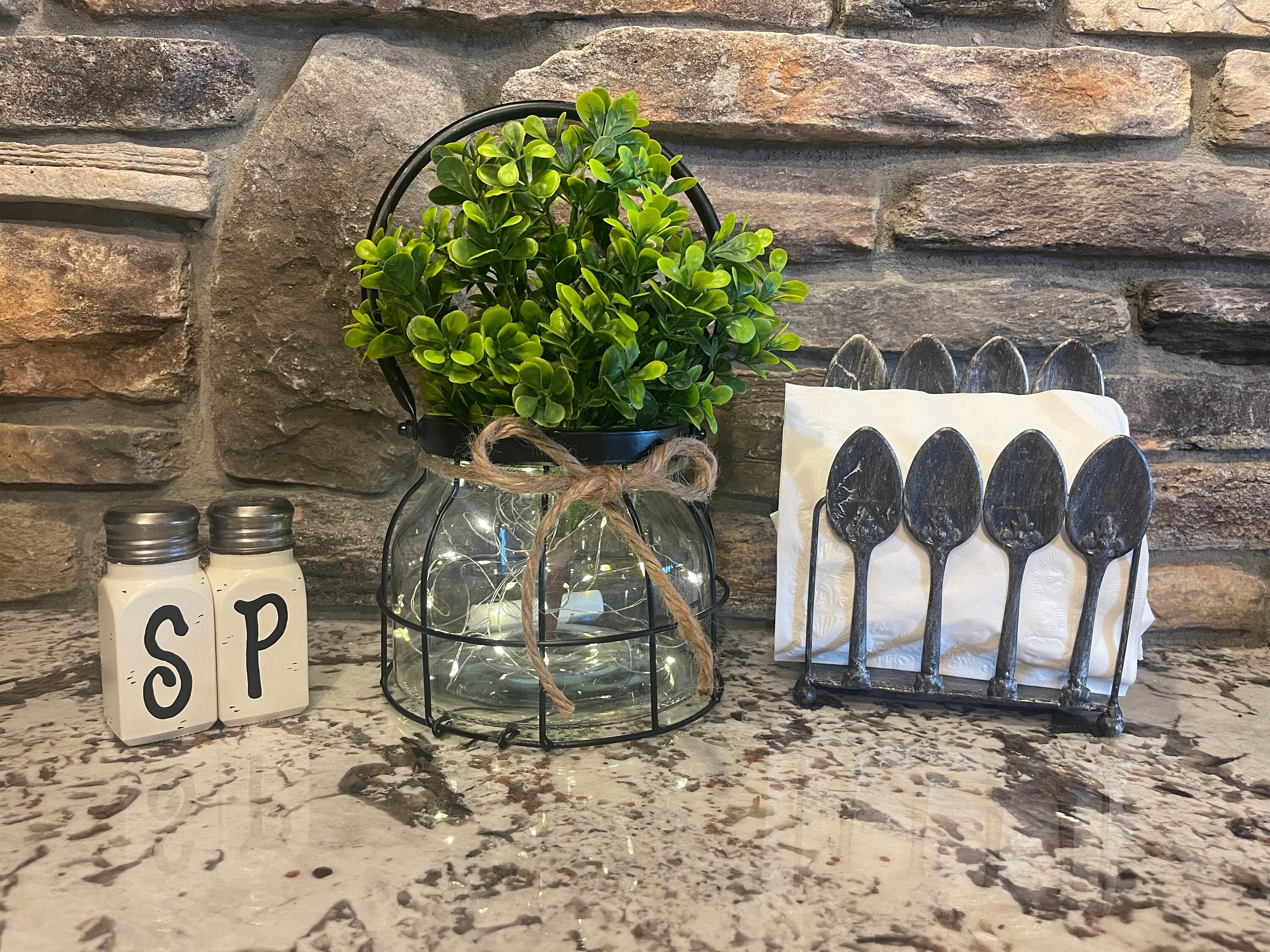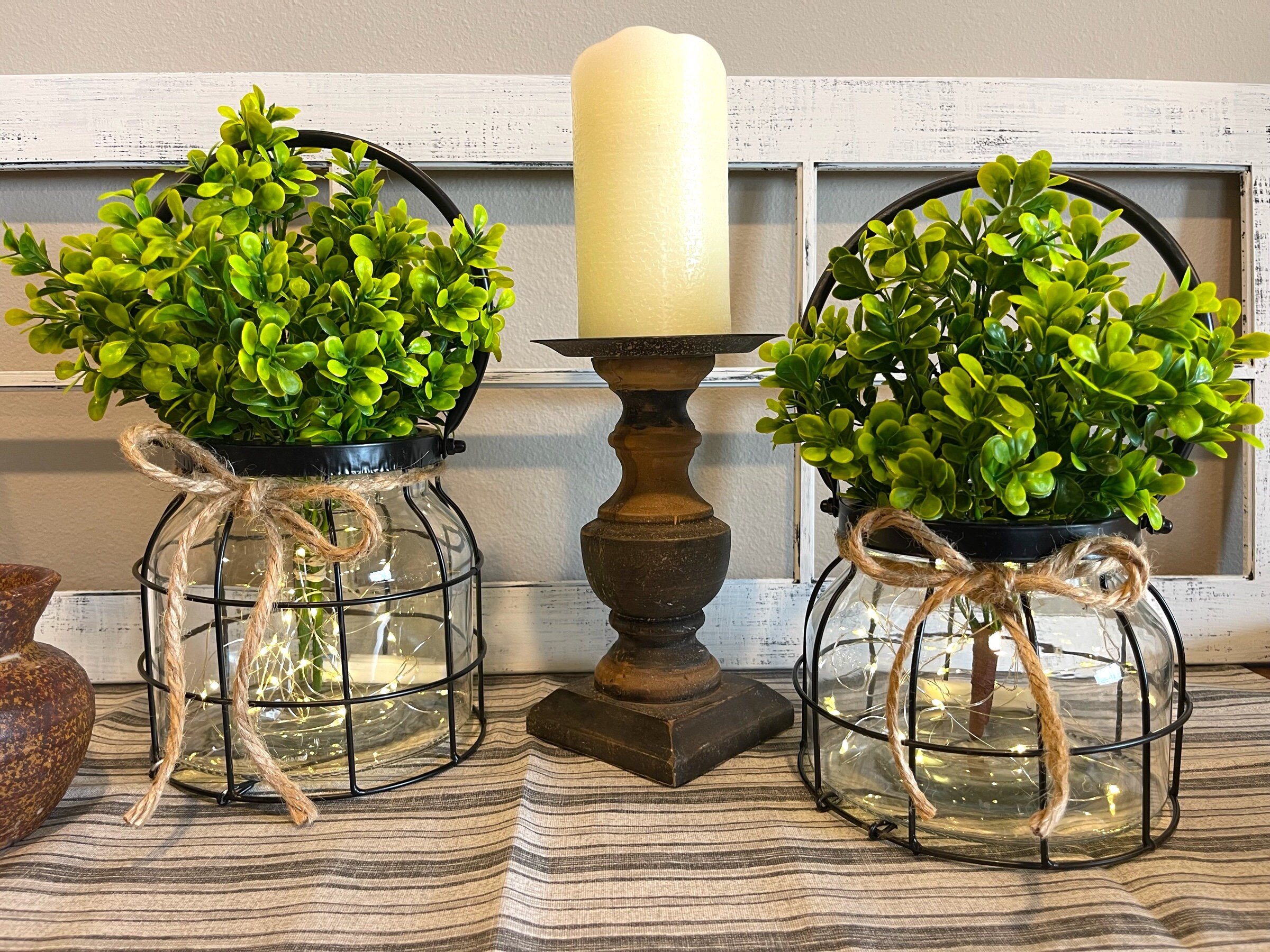 Add a special touch to your Home with this beautiful glass jar Lantern. It will look amazing on your dining room table, Kitchen Island, fireplace Mantle, Sofa Table, or Coffee Table. It also makes a great gift and so gorgeous for weddings, baby or bridal showers, or a special party. The ideas are endless.